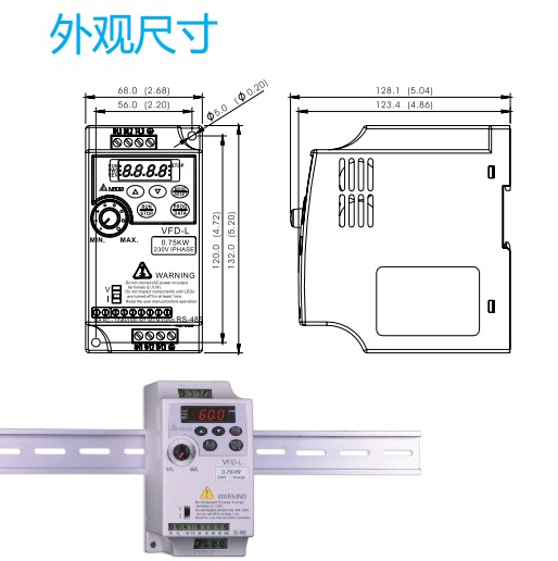 VFD-L VFD007L21A 750W,1P230V,標準機