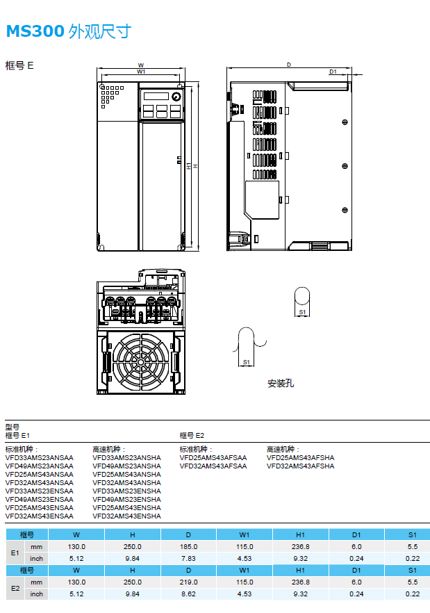 MS300 VFD11AMS21ANSHA 1P230V,2.2kW,內(nèi)置剎車單元,無內(nèi)置濾波器,高頻機(jī)種(max.1500hz),內(nèi)置PLC