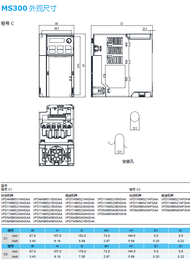 MS300 VFD17AMS43ANSKA 3p460v,7.5kW,IP20,內(nèi)置剎車單元,無內(nèi)置濾波器,內(nèi)置PLC,兼容M尺寸面板