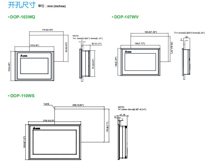 HMI DOP-B03S210 4.3"寬屏/分辨率480*272, COM1:RS-232(支持流量控制)/RS-422/RS-485, 開(kāi)孔尺寸:118.8 x 92.8