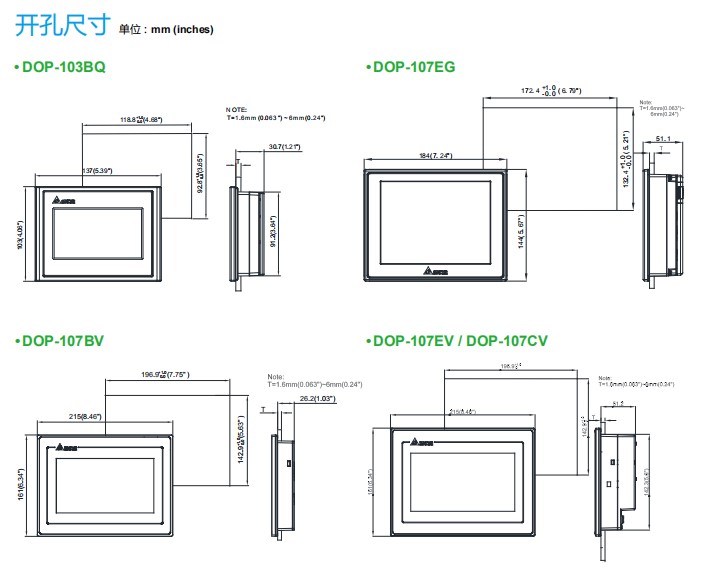 HMI DOP-B07PS515 7" 4:3屏幕/分辨率800x600/SD卡, COM1:RS232, COM2:RS-232/485, COM3:RS-422/485, 開(kāi)孔尺寸:172.4 x 132.4