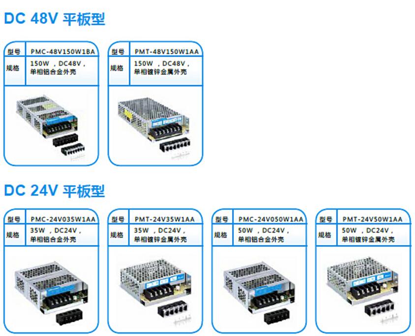 | 平板版型電源 | PMC | PMC-24V050W1AA | 85Vac~264Vac or 125Vdc~375Vdc 單相 |