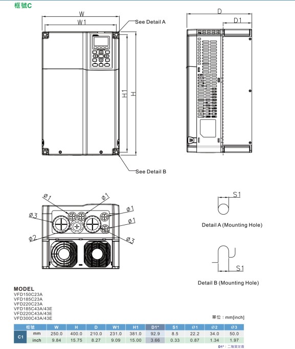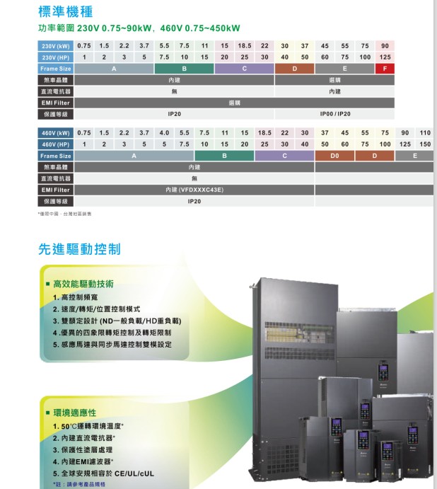 VFD-C2000 VFD900C43E 380V/3P,90kW,內(nèi)置10k PLC,剎車選購,DC電抗內(nèi)建,接線盒內(nèi)建,UL,CE