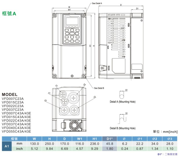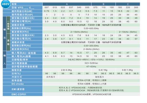 VFD-C2000 VFD007C43E 380V/3P,0.75kW,內(nèi)置10k PLC,內(nèi)建剎車,DC電抗選購,EMI內(nèi)建,UL,CE