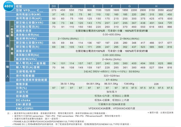 VFD-C2000 VFD450C43A 380V/3P,45kW,內(nèi)置10k PLC,剎車選購,DC電抗內(nèi)建, UL,CE