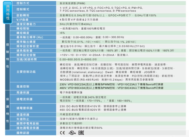 VFD-C2000 VFD220C23A 220V/3P,22kW,內(nèi)置10k PLC,內(nèi)建剎車,DC電抗選購, UL,CE