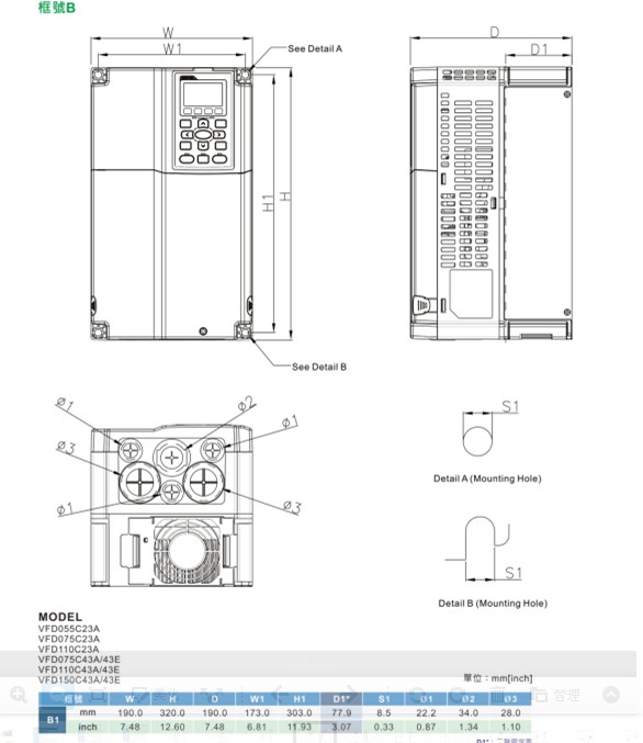 VFD-C2000 VFD750C43A 380V/3P,75kW,內(nèi)置10k PLC,剎車選購,DC電抗內(nèi)建, UL,CE