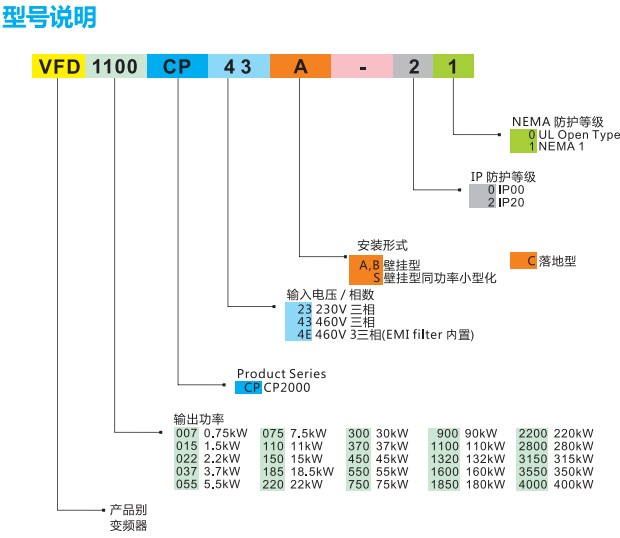VFD-CP VFD750CP43B-21 380V/3P,75kW,內(nèi)置10k PLC,剎車選購,DC電抗內(nèi)建, UL,CE,IP20,NEMA1
