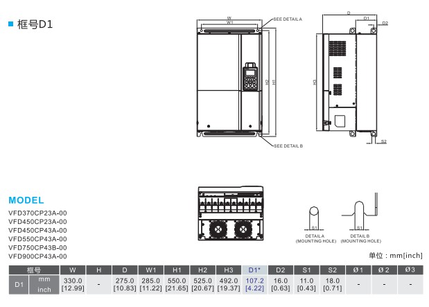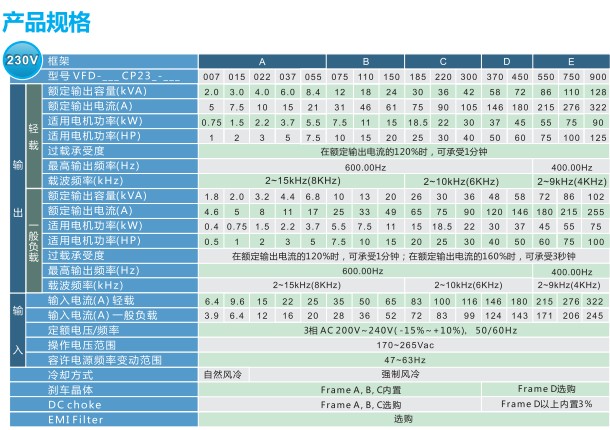 VFD-CP VFD450CP23A-21 220V/3P,45kW,內(nèi)置10k PLC,剎車內(nèi)建,DC電抗選購, UL,CE,IP00,UL OPEN TYPE