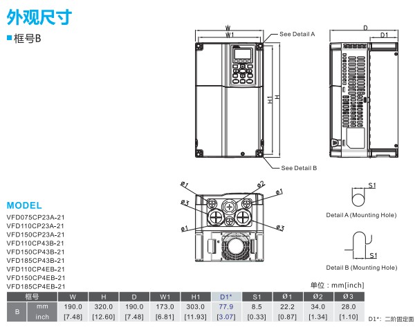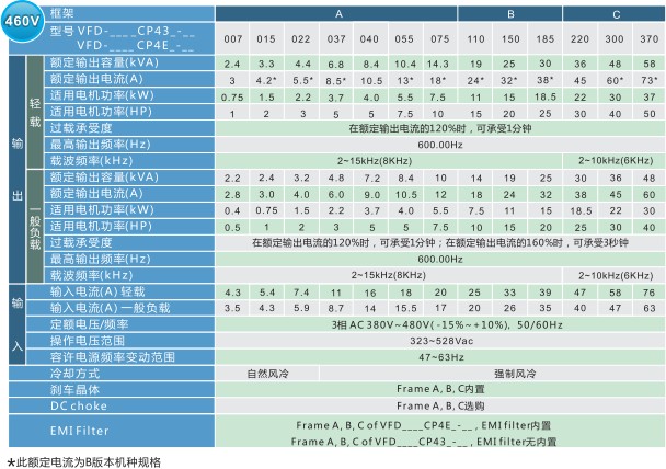 VFD-CP VFD075CP43B-21 380V/3P,7.5kW,內(nèi)置10k PLC,剎車選購,DC電抗內(nèi)建, UL,CE,IP20,NEMA1