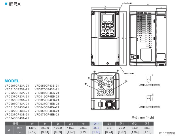 VFD-CP VFD220CP43A-21 380V/3P,22kW,內(nèi)置10k PLC,剎車內(nèi)建,DC電抗選購, UL,CE,IP20,NEMA1