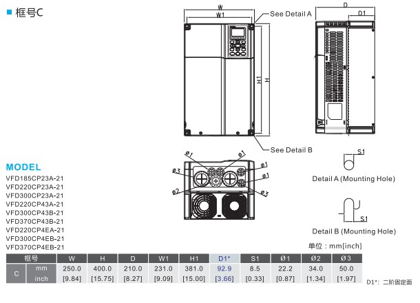 VFD-CP VFD185CP23A-21 220V/3P,18.5kW,內(nèi)置10k PLC,剎車內(nèi)建,DC電抗選購, UL,CE,IP20,NEMA1